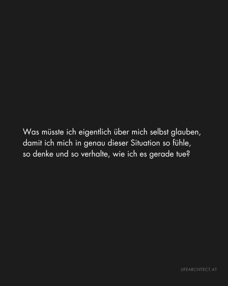 Ich finde, wir unterschätzen oft, wie sehr das, was wir erleben, mit dem zusammenhängt, was wir über uns selbst für wahr halten. Wir schauen auf unsere Gefühle, unsere Gedanken, unser Verhalten und denken, das alles passiert uns einfach. Als wären Emotionen so etwas wie Wetter. Heute halt schlecht, morgen besser. Dabei lohnt es sich manchmal, einen Schritt zurückzugehen und sich eine unbequemere Frage zu stellen: Was müsste ich eigentlich über mich selbst glauben, damit ich mich in genau dieser Situation so fühle, so denke und so verhalte, wie ich es gerade tue?