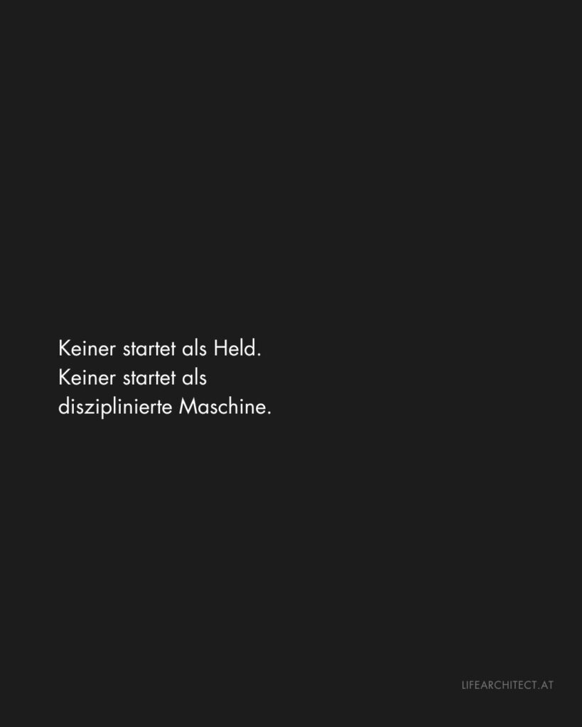 Keiner startet als Held. Keiner startet als disziplinierte Maschine. Beitrag lesen »