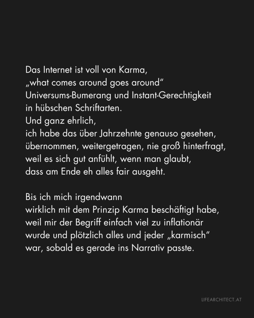 Das Internet ist voll von Karma, „what comes around goes around“, Universums-Bumerang und Instant-Gerechtigkeit in hübschen Schriftarten. Und ganz ehrlich, […]